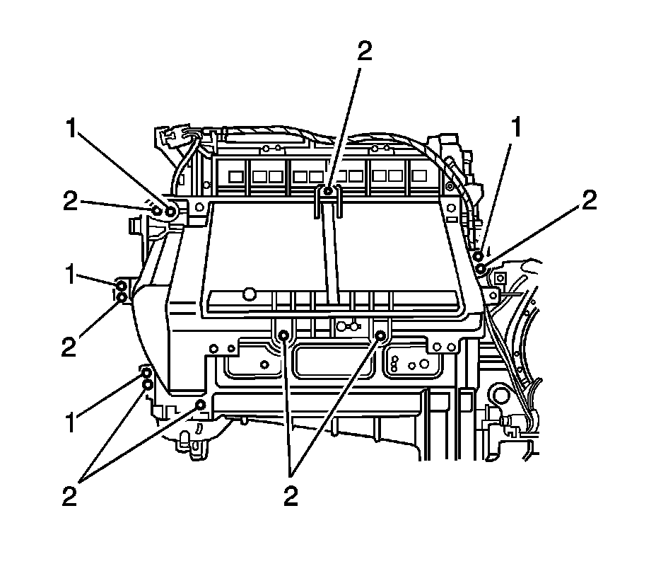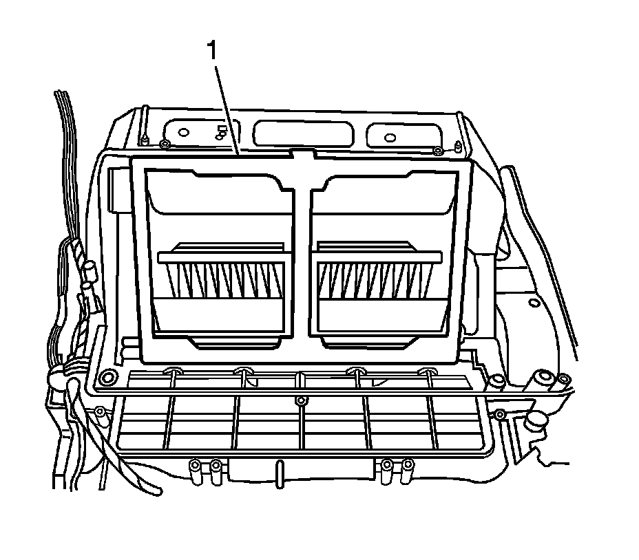 1. Install a new heater core foam seal (1) to the HVAC module assembly.