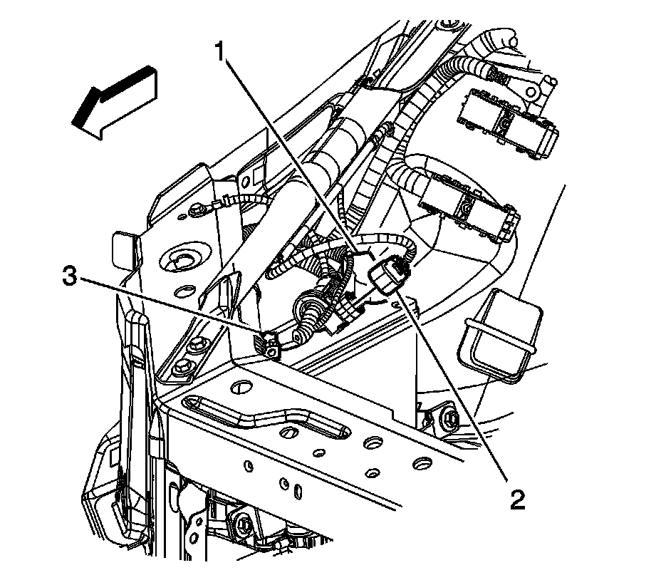 1. Disconnect the instrument panel (I/P) harness electrical connector (2) from the battery current sensor.