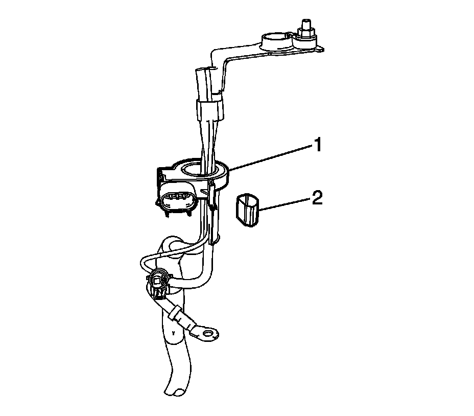 1. Slide the NEW battery current sensor (1) up onto the battery cable.