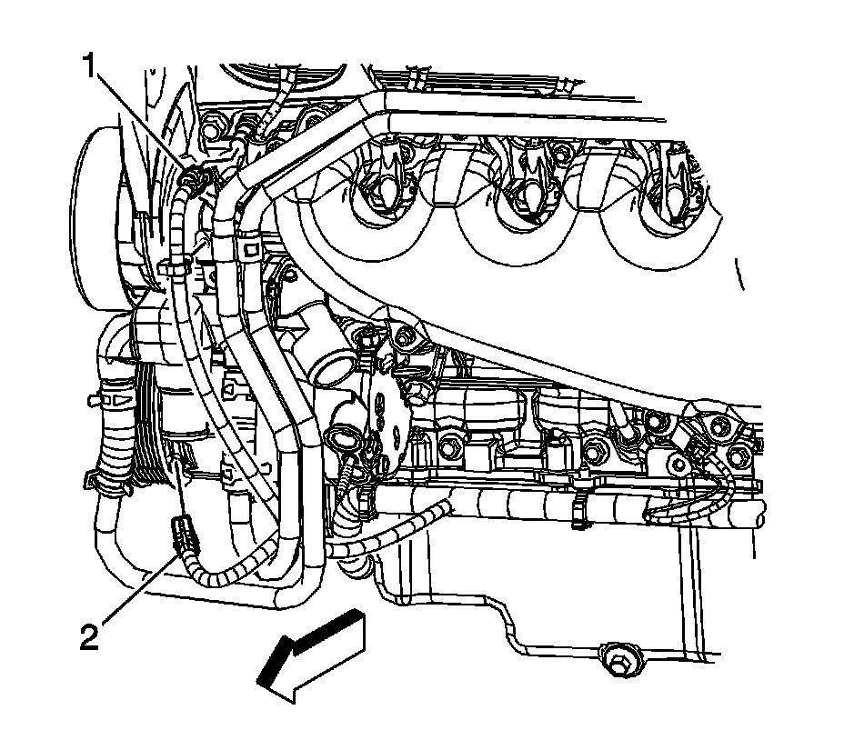 1. Drain the cooling system below the level of the engine coolant temperature (ECT) sensor. Refer to Cooling System Draining and Filling (L26 Static Fill) (Service and Repair)Cooling System Draining and Filling (LS4 Static Fill) (Service and Repair)Cooling System Draining and Filling (L26 GE 47716 Fill) (Service and Repair)Cooling System Draining and Filling (LS4 GE 47716 Fill) (Service and Repair).