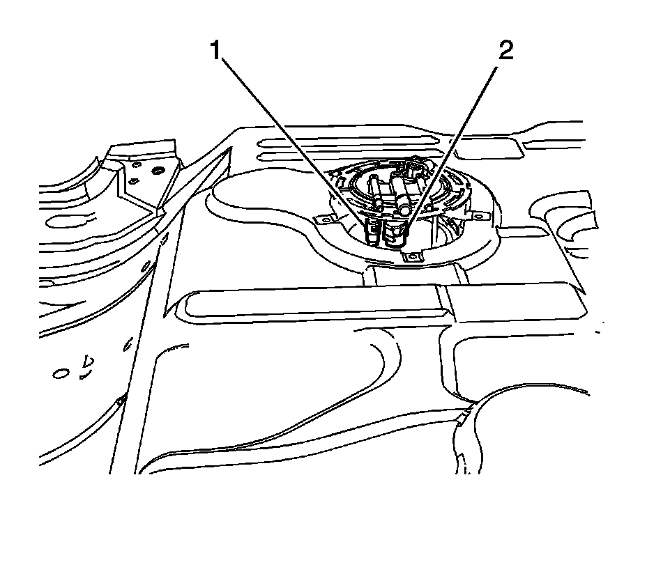 4. Connect the internal vent line quick connect fittings (1 and 2) to the sender. Refer to Plastic Collar Quick Connect Fitting Service (Plastic Collar Quick Connect Fitting Service).