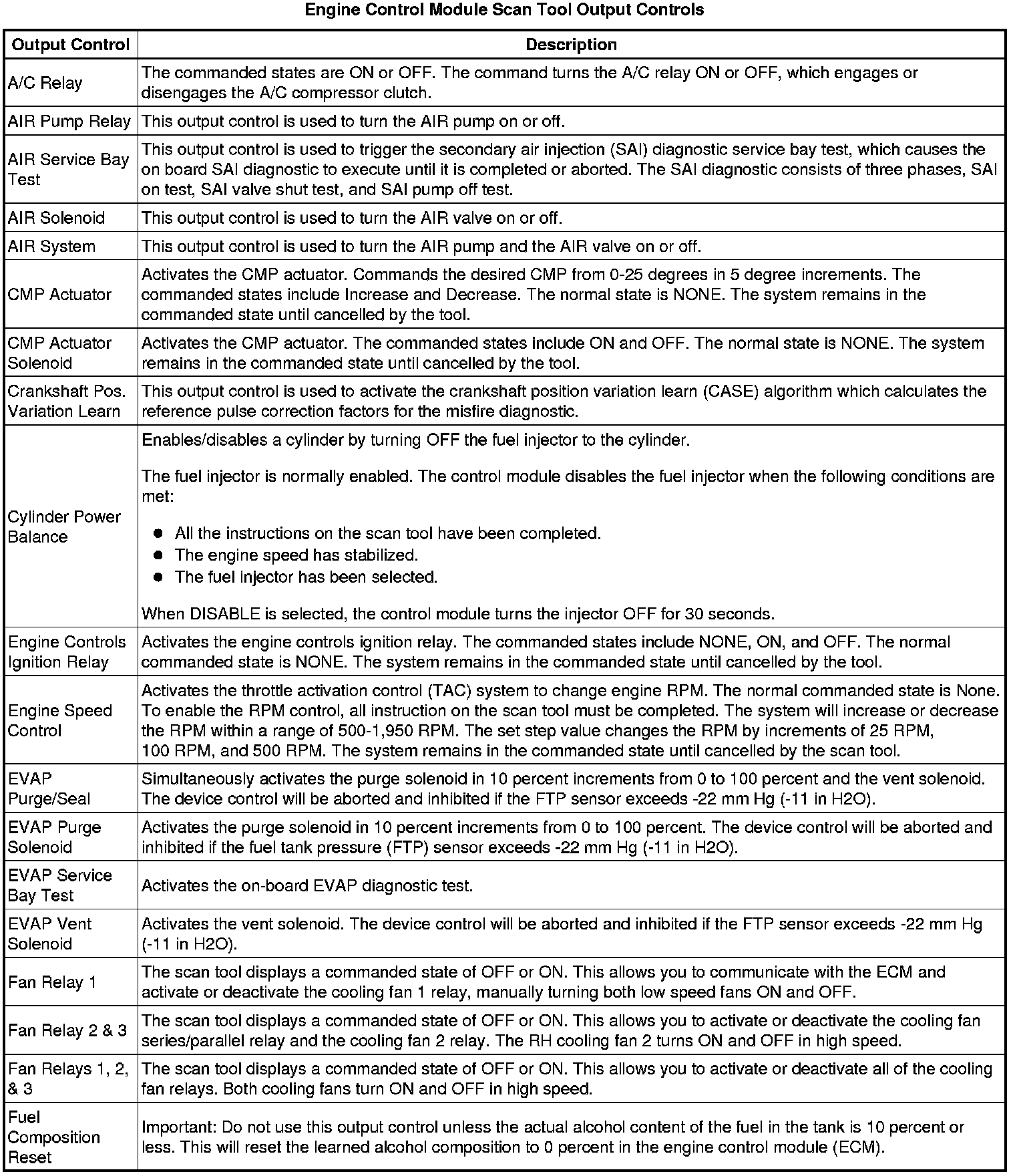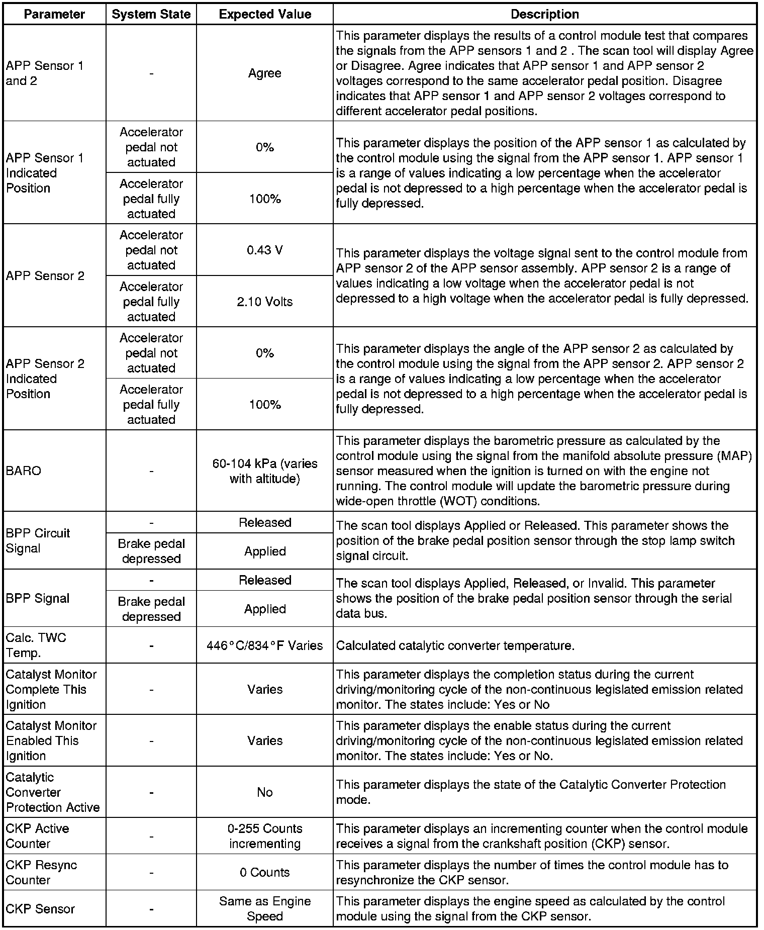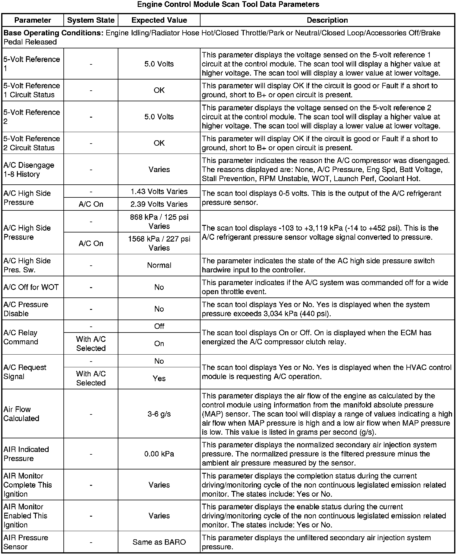 The Engine Control Module (ECM) Scan Tool Data List contains all ECM-related parameters that are available on the scan tool. The list is arranged in alphabetical order. A given parameter may appear in any one of the data lists, and in some cases may appear more than once, or in more than one data list in order to group certain related parameters together.