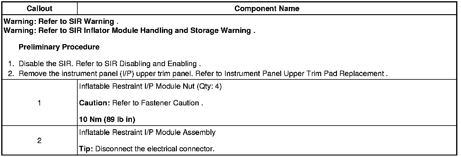 Instrument Panel Inflatable Restraint Module Replacement