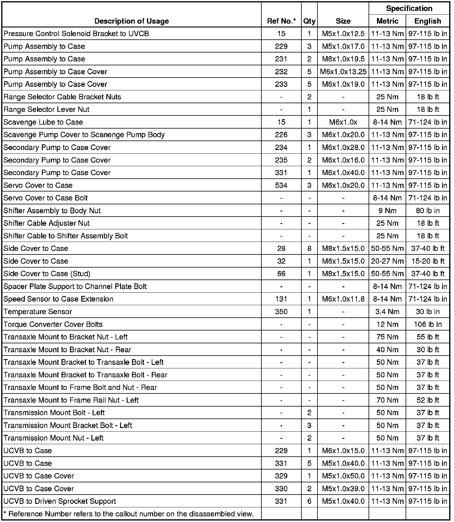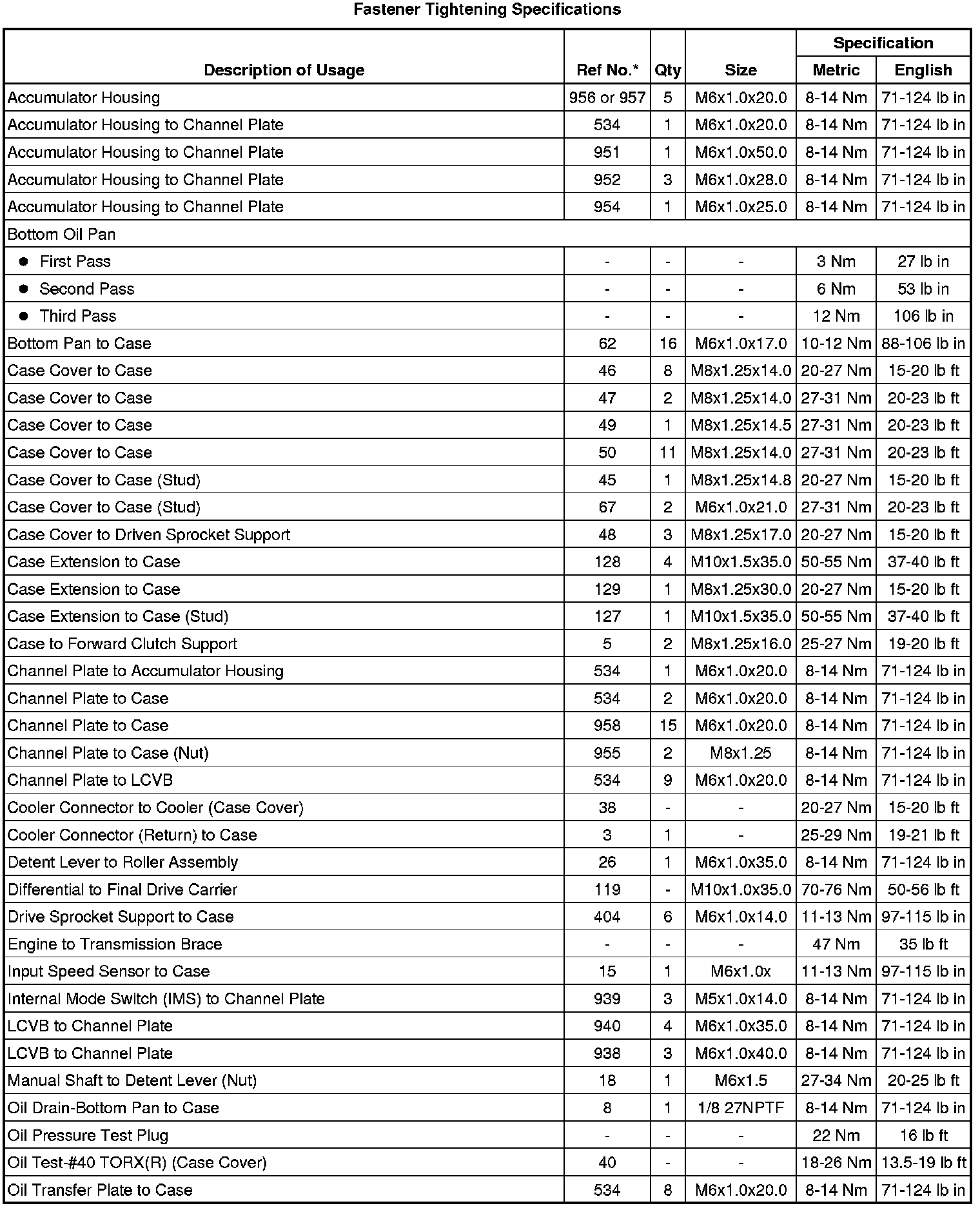 Fastener Tightening Specifications