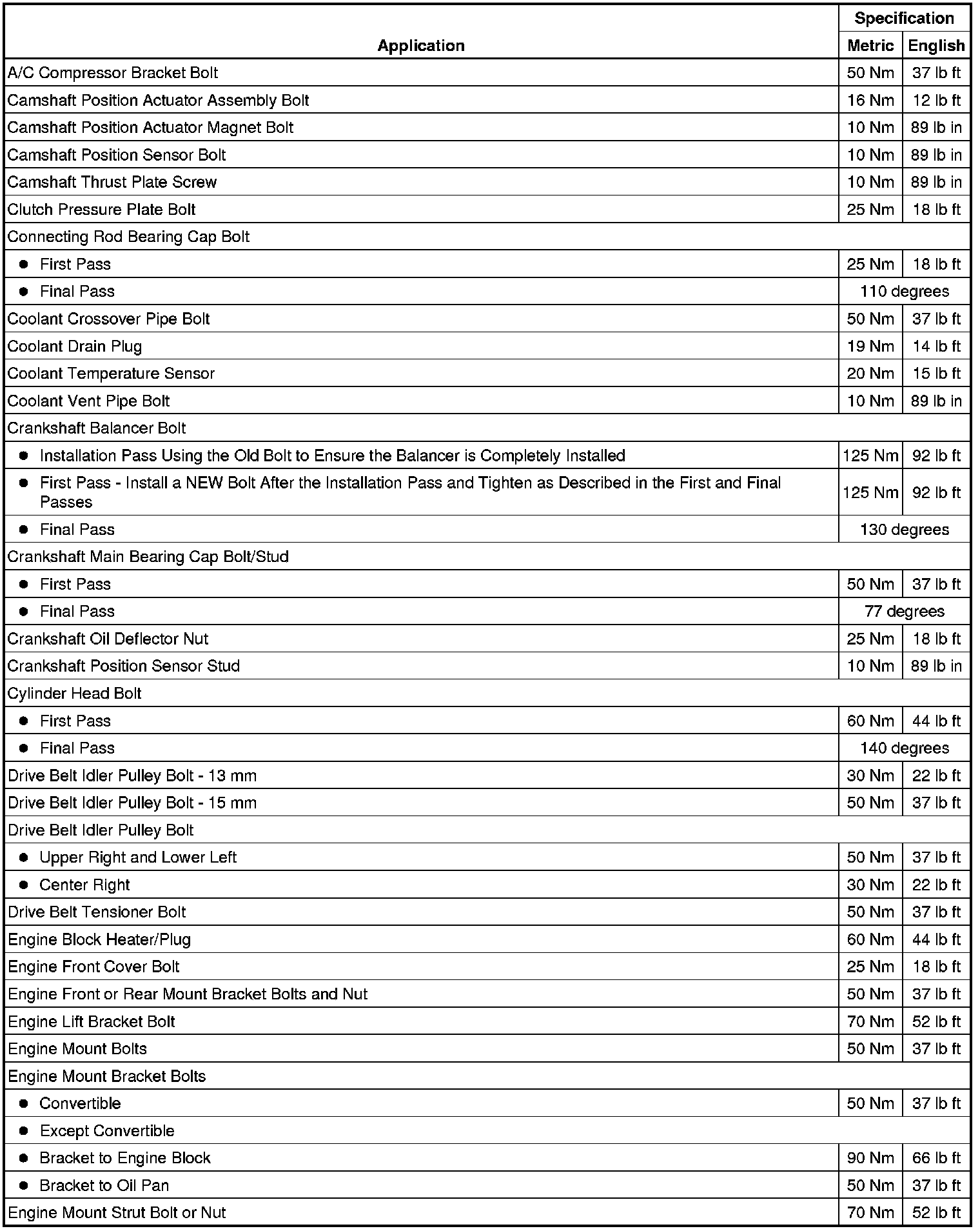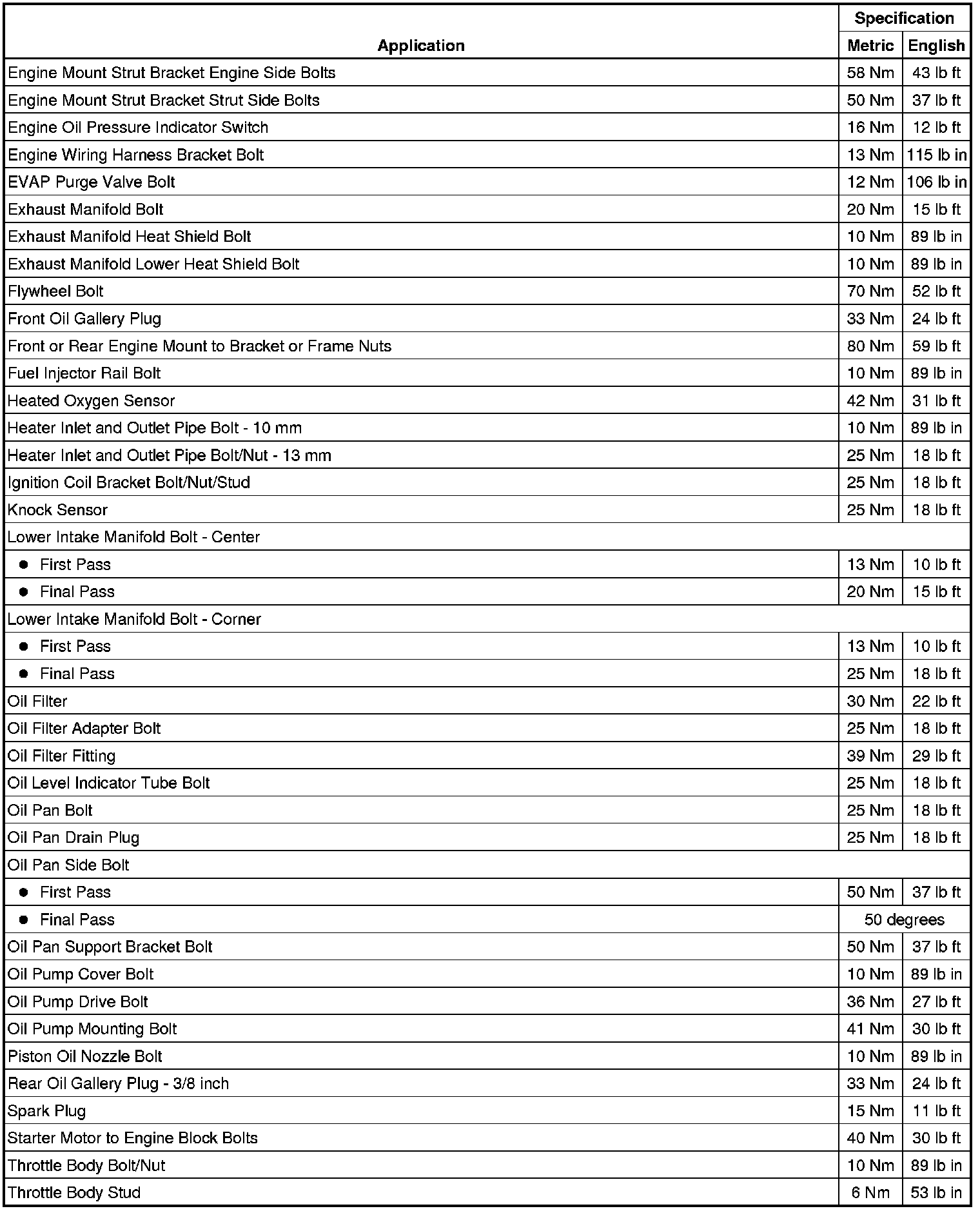Fastener Tightening Specifications