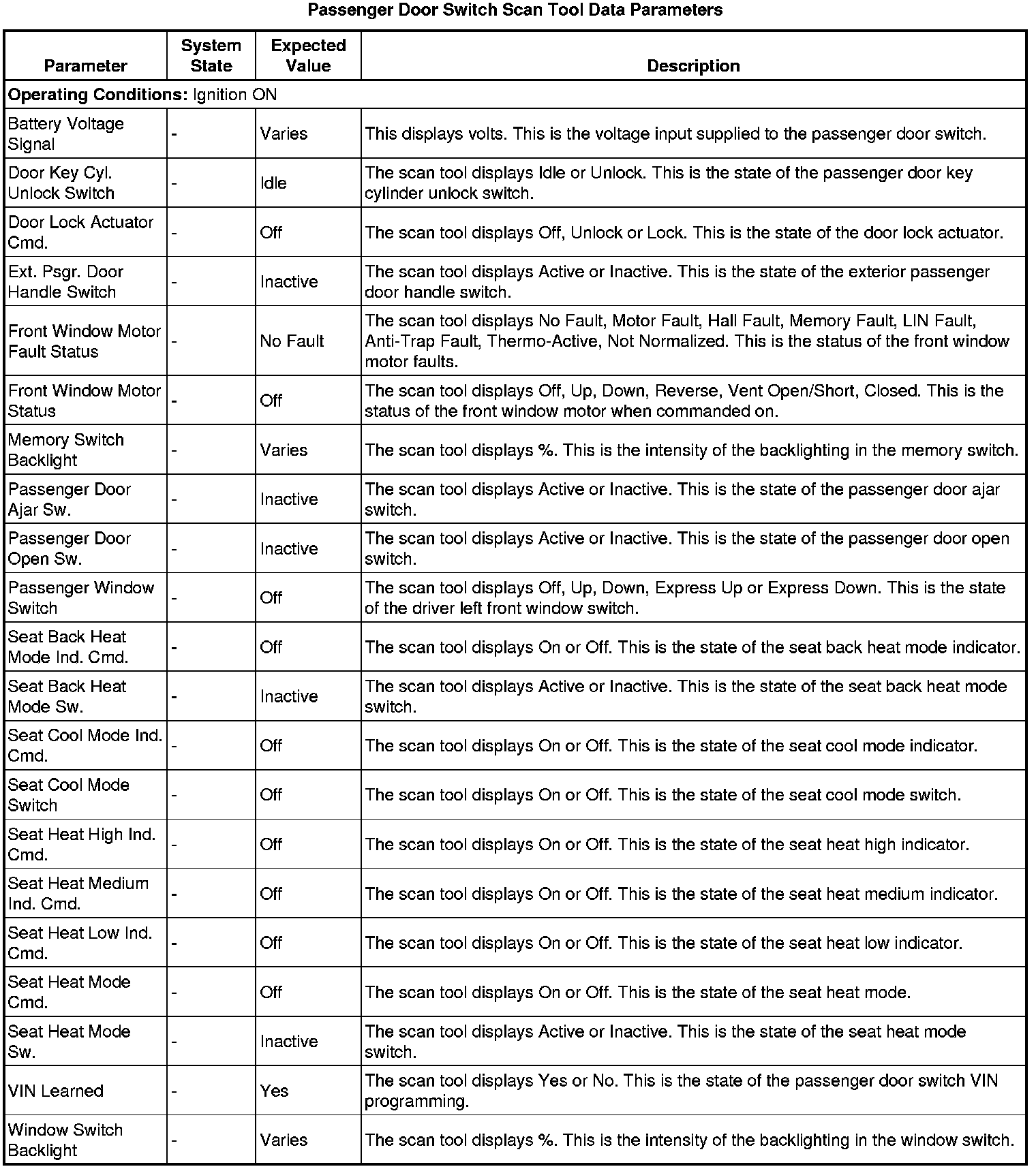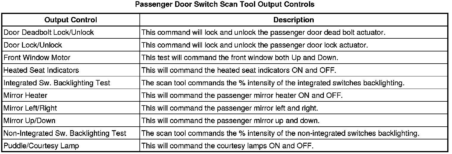 Door Lock Control Module Scan Tool Information (Passenger Door Switch)