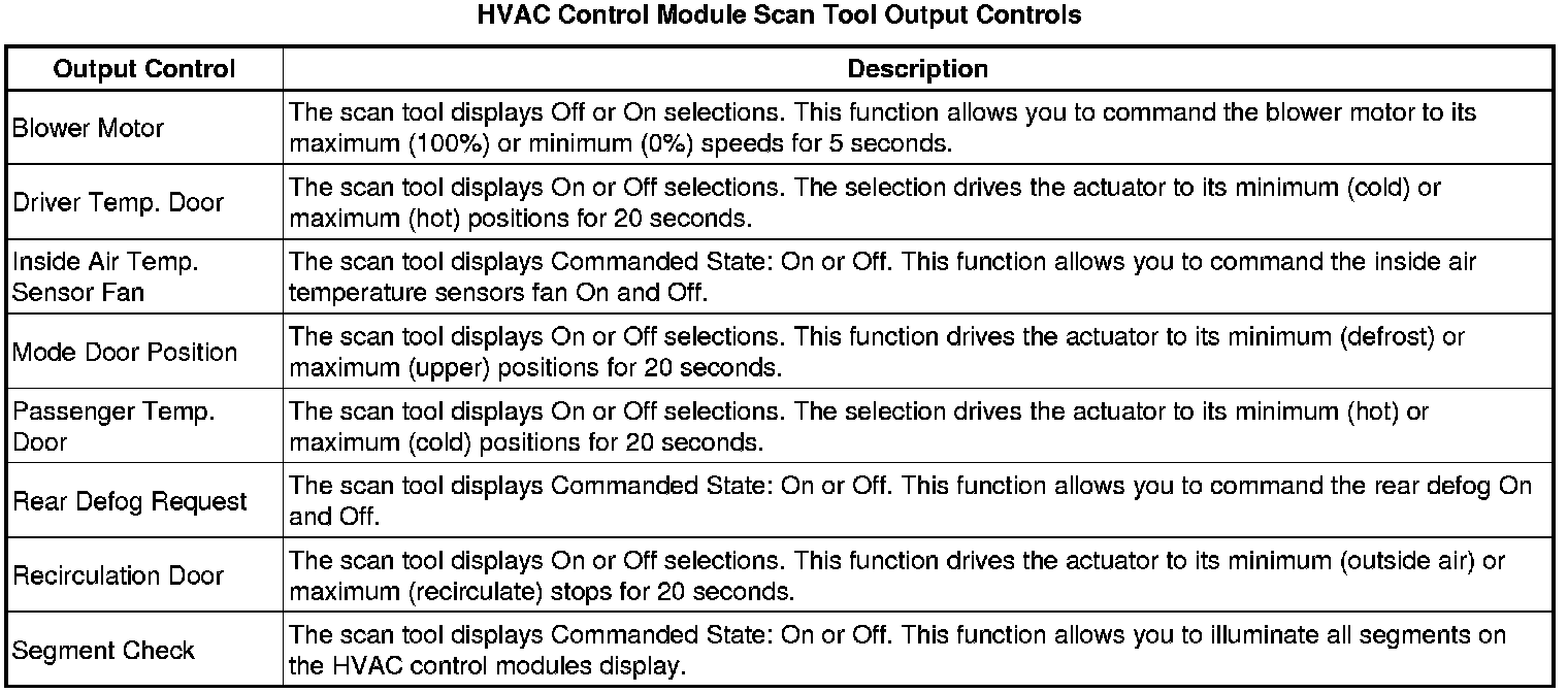 Heating, Ventilation and Air Conditioning Control Module Scan Tool Information