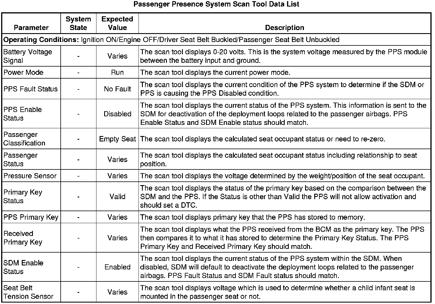 Inflatable Restraint Passenger Presence System Scan Tool Information