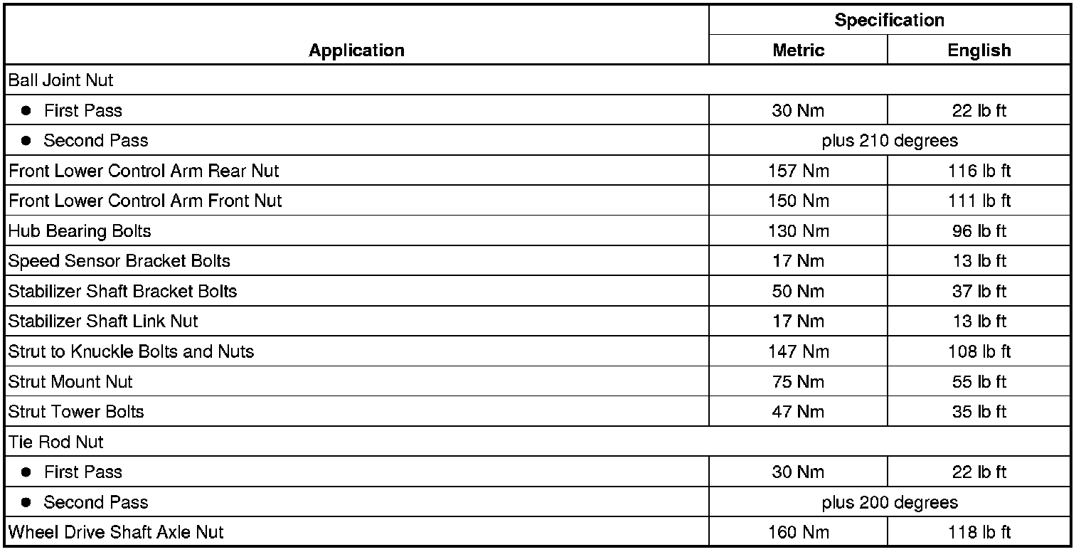 Fastener Tightening Specifications
