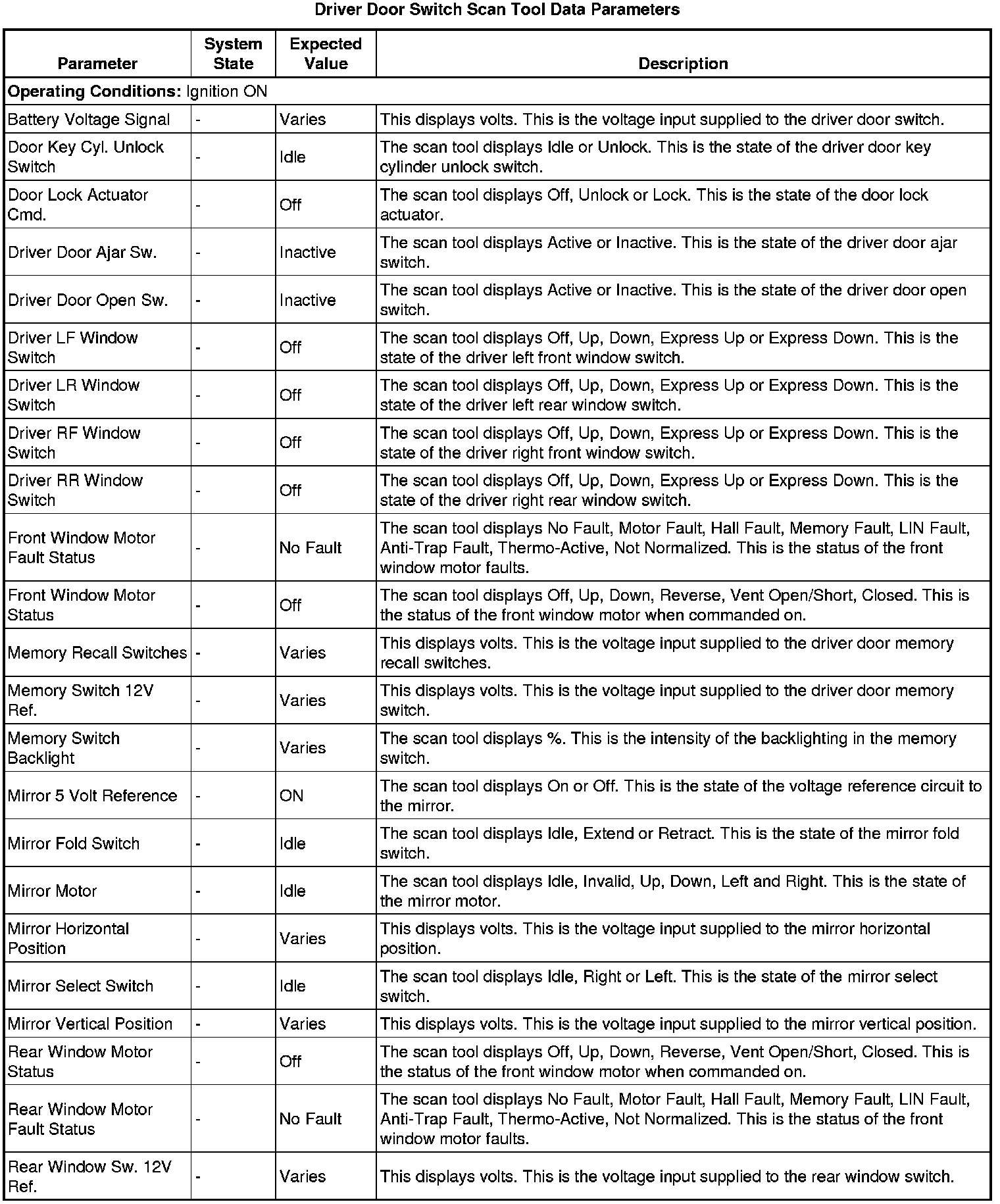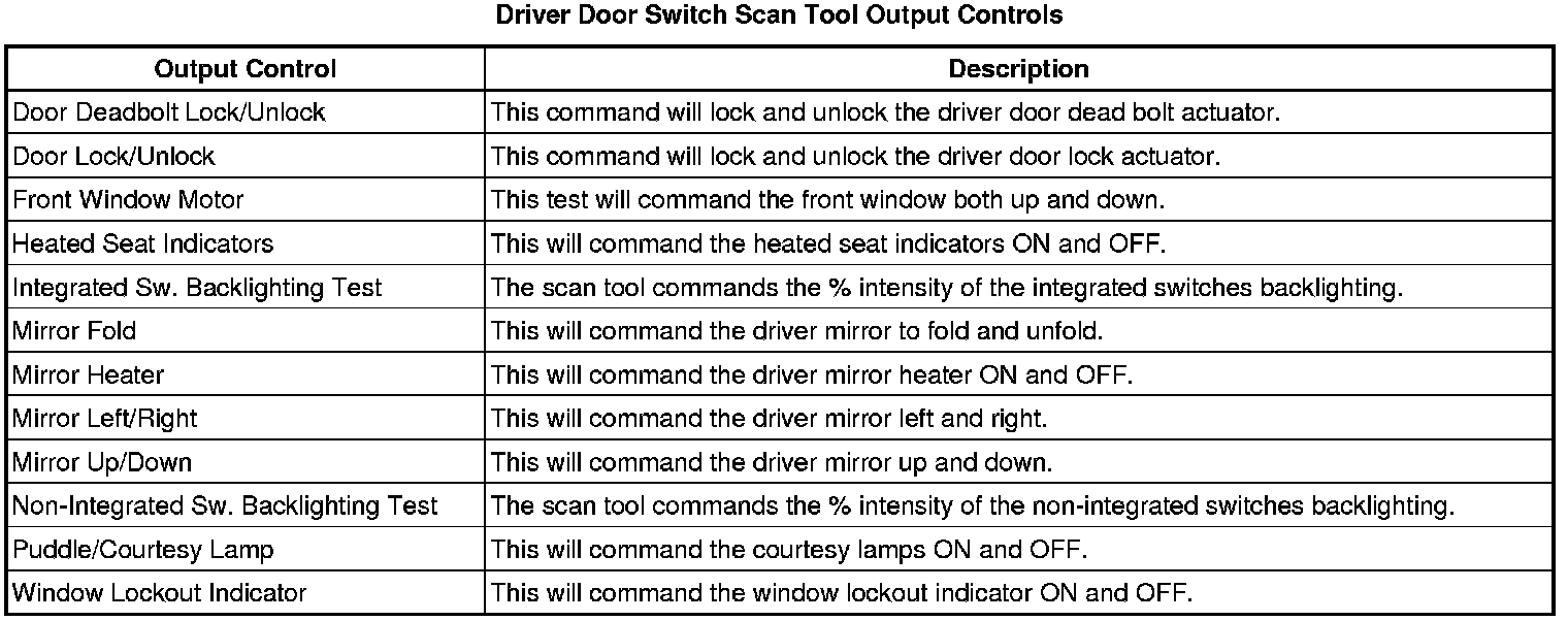 Door Lock Control Module Scan Tool Information (Driver Door Switch)