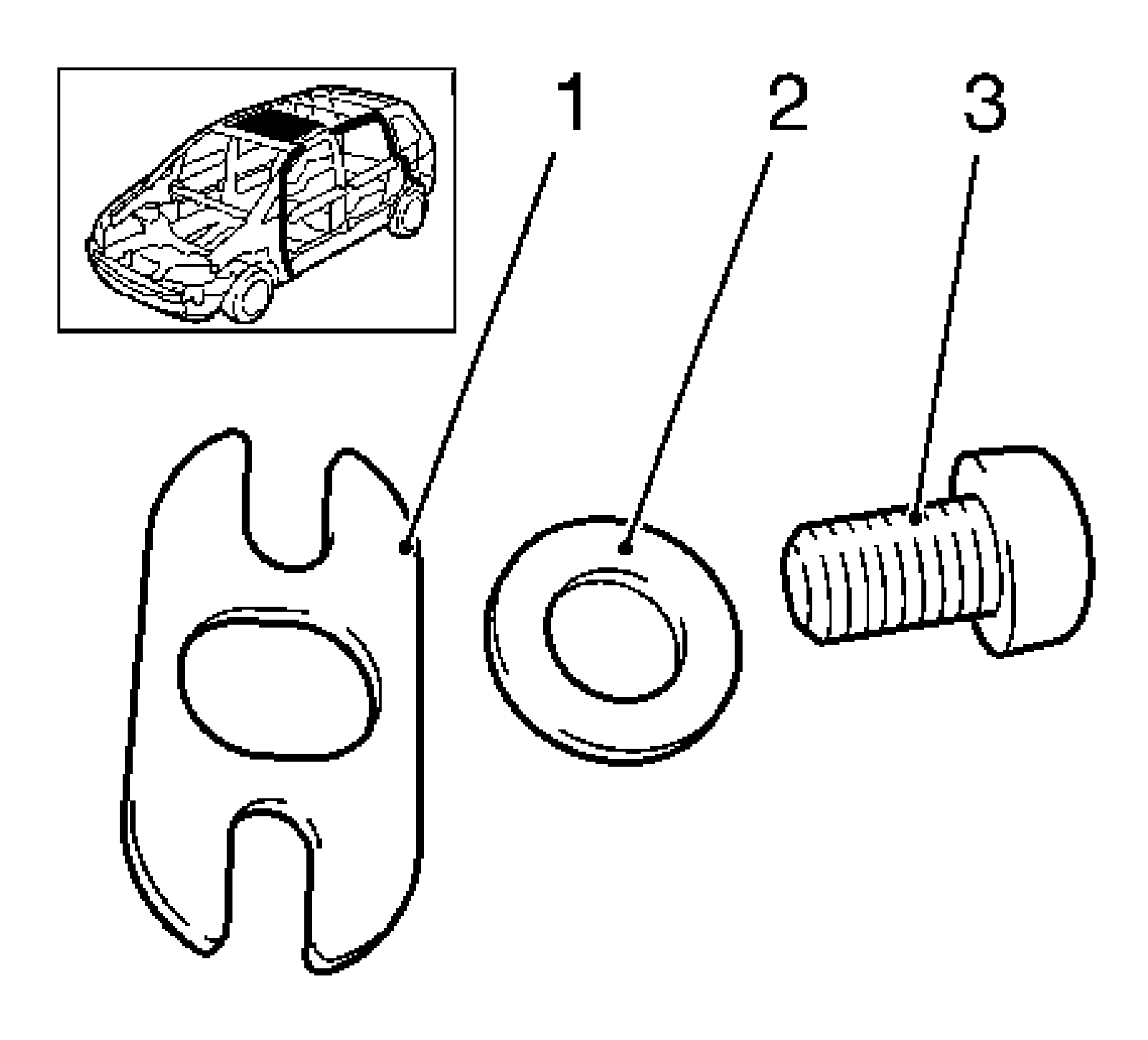 2. Install the 2 screws (3) with washers (2).