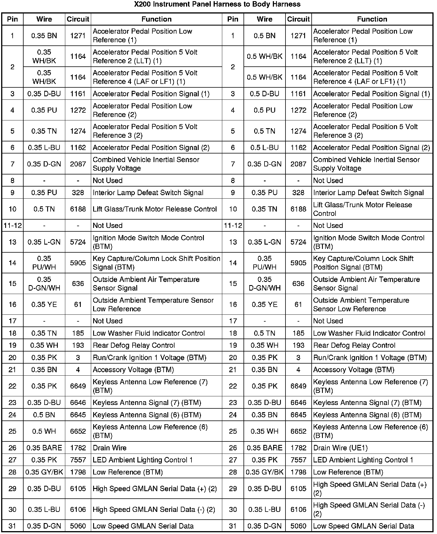 X200 Instrument Panel Harness to Body Harness