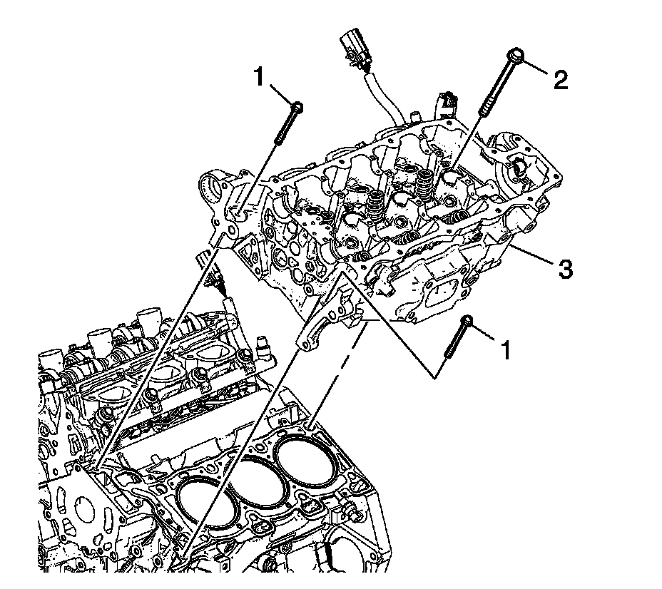 3. Align the left cylinder head (3) with the deck face locating pins.