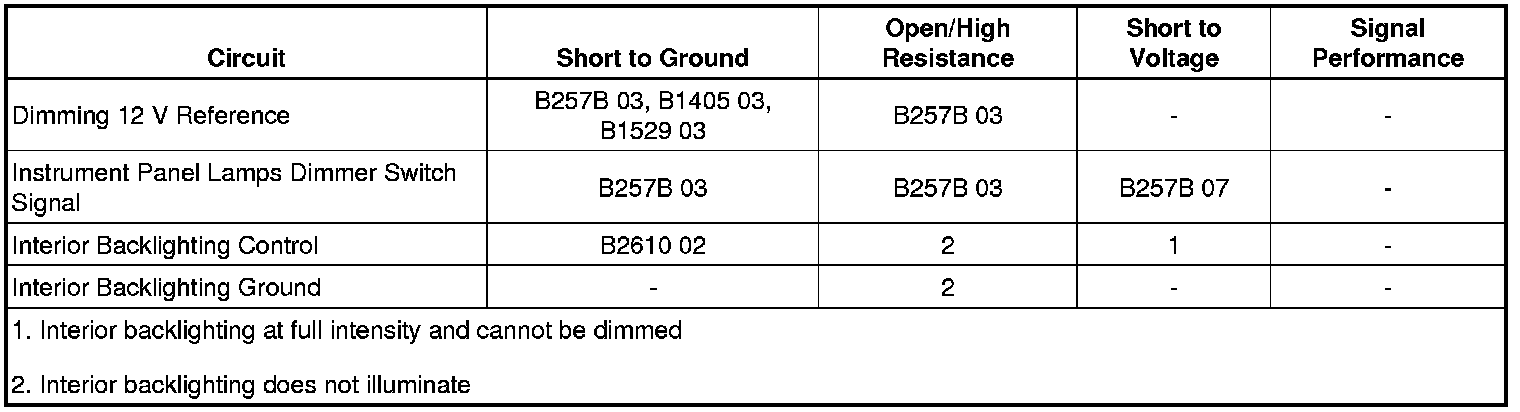 • If the backlighting does not go ON and OFF, refer to Interior Backlighting Circuit Test.