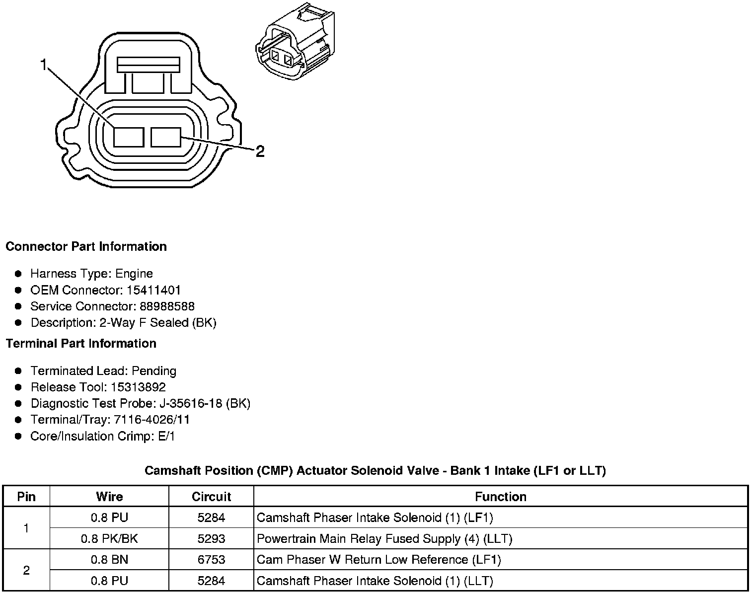 Camshaft Position (CMP) Actuator Solenoid Valve - Bank 1 Intake (LF1 or LLT)