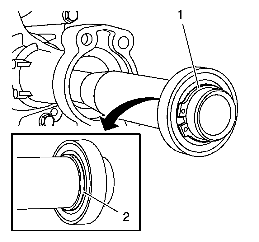 1. Install the transfer case intermediate gear bearing retaining ring (2).