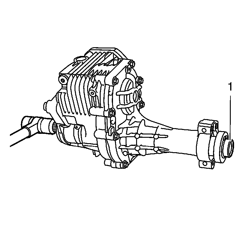 3. Remove the transfer case intermediate shaft retaining ring (1).