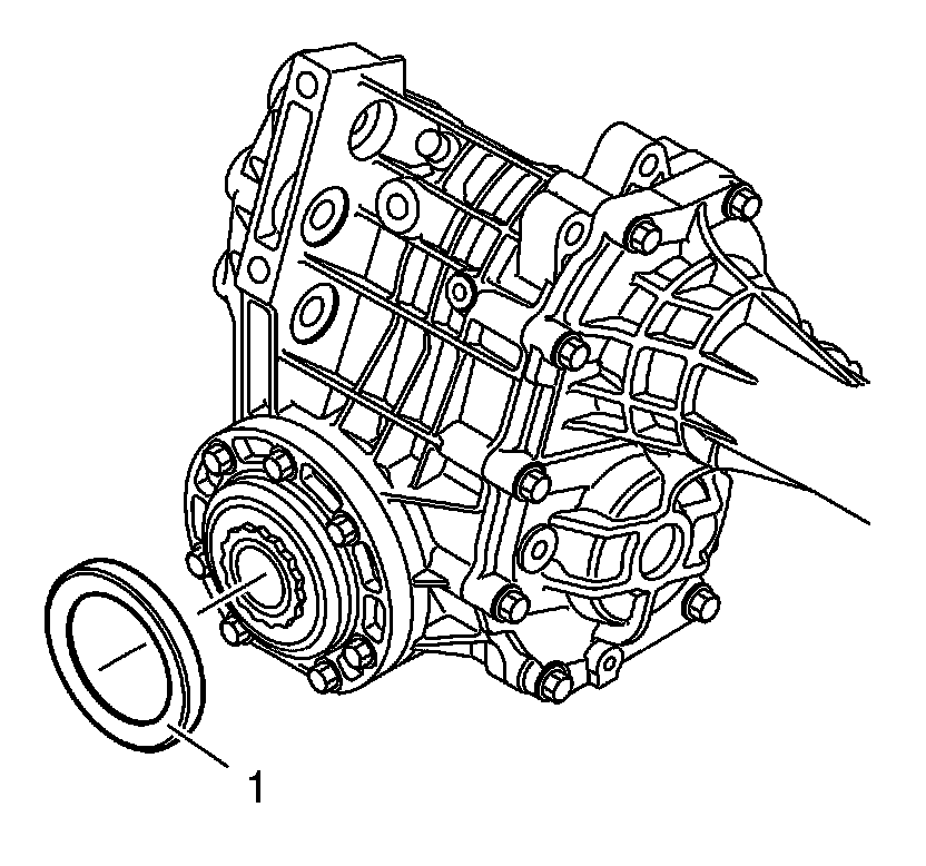 Install the rear output shaft seal dirt deflector (1), using the DT-49095 - drift.