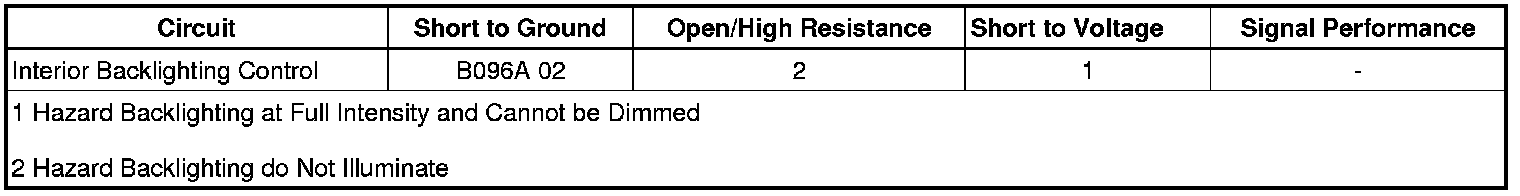 - Hazard Lamps Switch Backlight Circuit Short to Ground