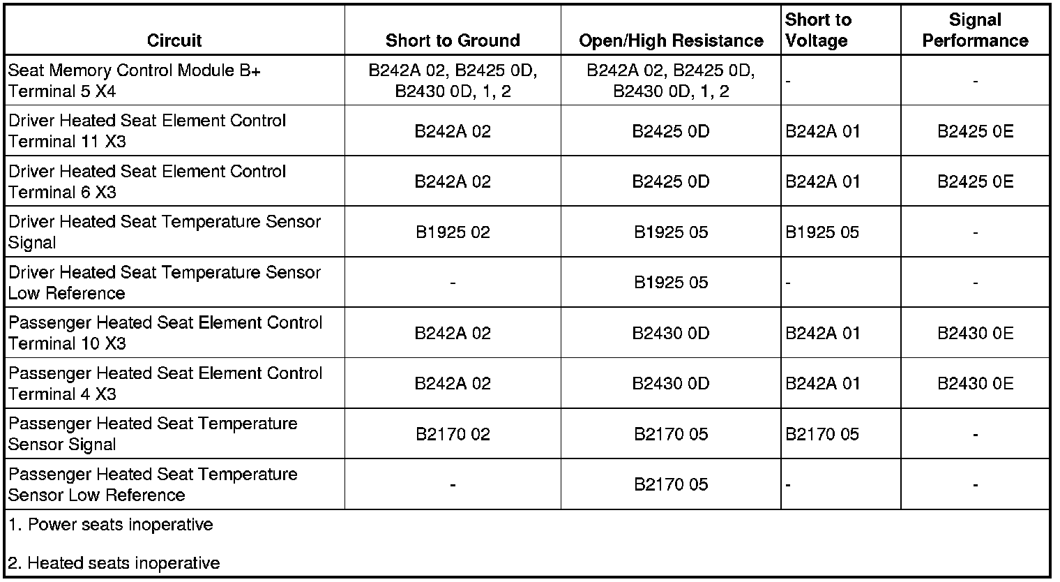 - Seat Heaters Common Circuit Short to Battery