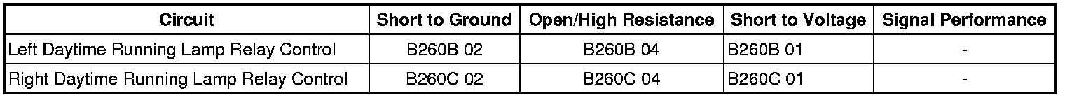- Right Daytime Running Lamp Relay Control Circuit Short to Battery