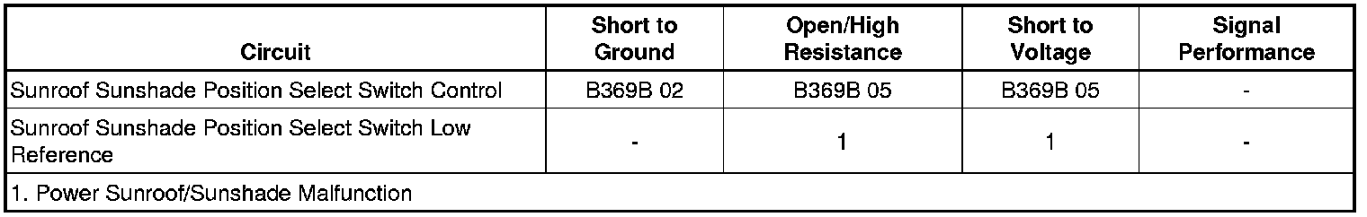 - Sunroof Sunshade Position Select Switch Circuit Short to Ground