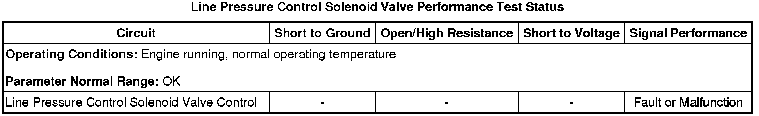 * Line Pressure Control Solenoid Valve Performance Test Status