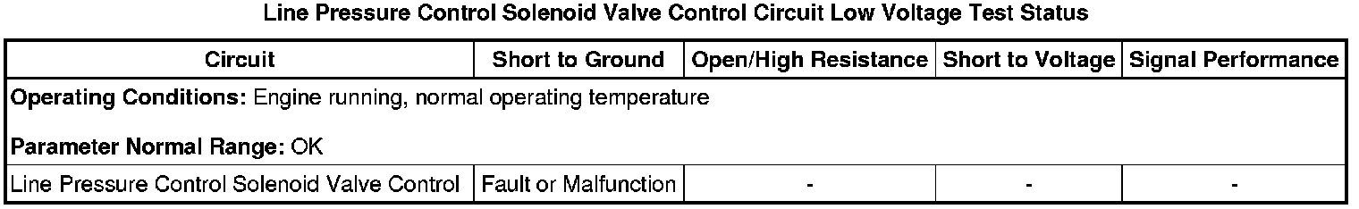 * Line Pressure Control Solenoid Valve Control Circuit Low Voltage Test Status