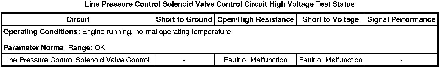 * Line Pressure Control Solenoid Valve Control Circuit High Voltage Test Status