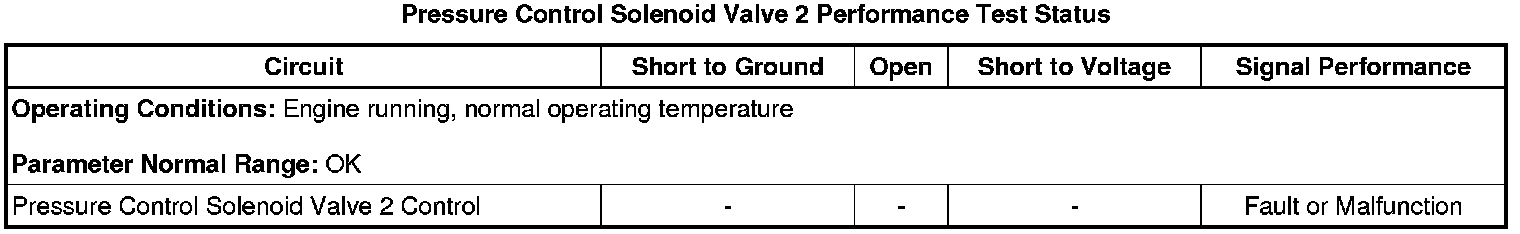 * Pressure Control Solenoid Valve 2 Performance Test Status