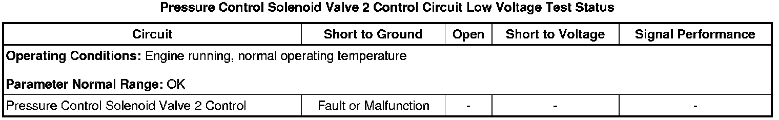* Pressure Control Solenoid Valve 2 Control Circuit Low Voltage Test Status