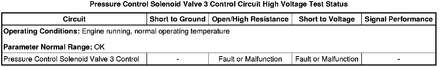 * Pressure Control Solenoid Valve 3 Control Circuit High Voltage Test Status