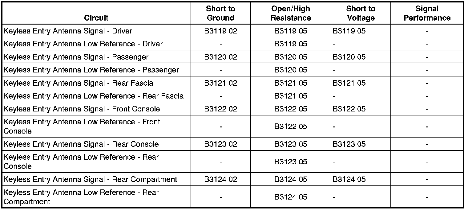 5. If all circuits test normal, test or replace the keyless entry antenna.