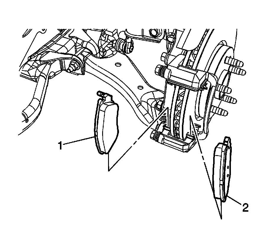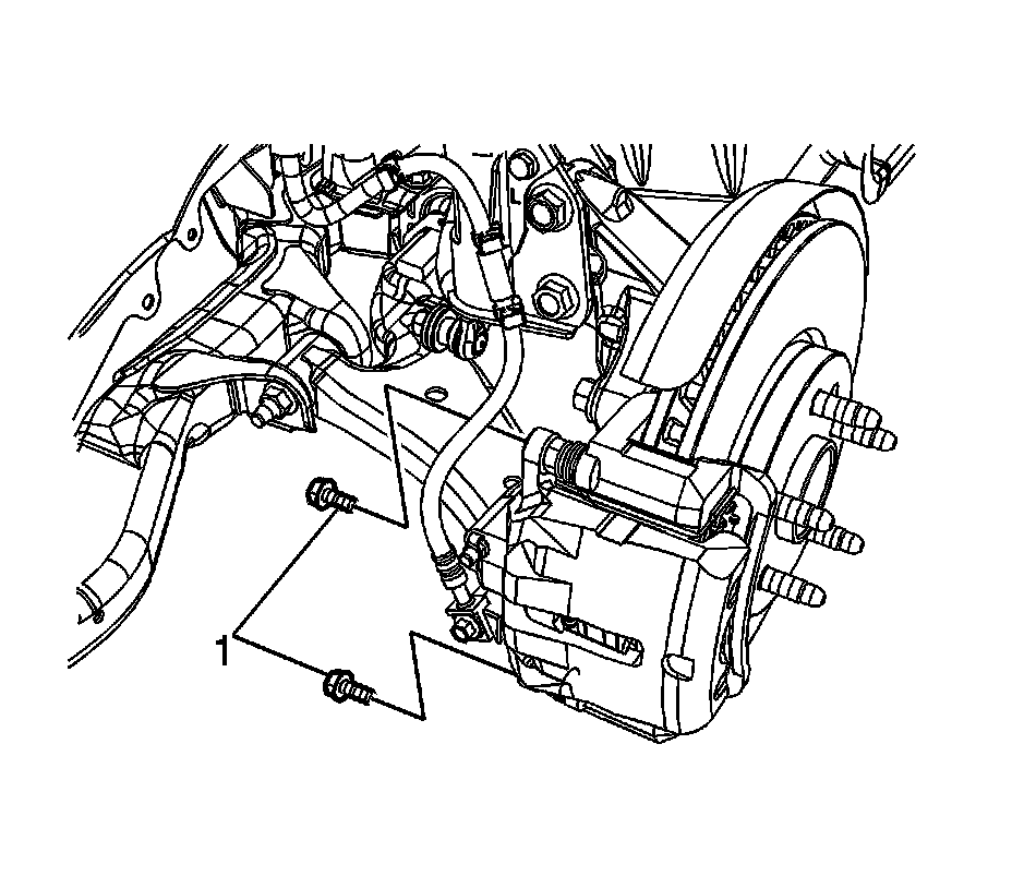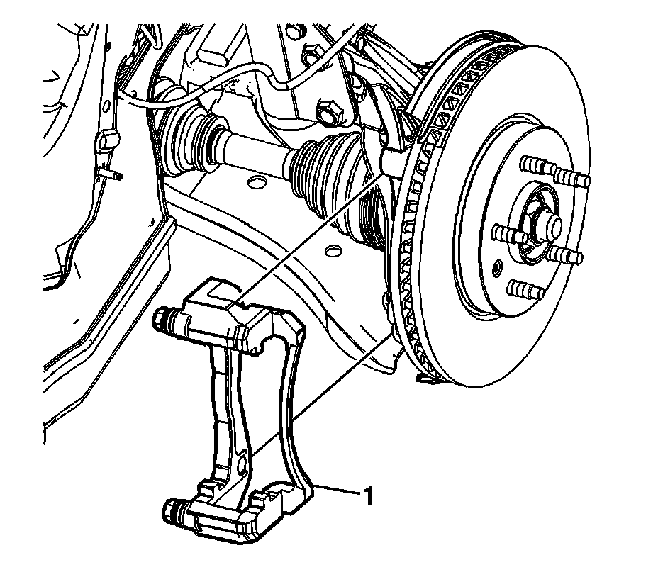 Caution: Support the brake caliper with heavy mechanic wire, or equivalent, whenever it is separated from its mount and the hydraulic flexible brake hose is still connected. Failure to support the caliper in this manner will cause the flexible brake hose to bear the weight of the caliper, which may cause damage to the brake hose and in turn may cause a brake fluid leak.