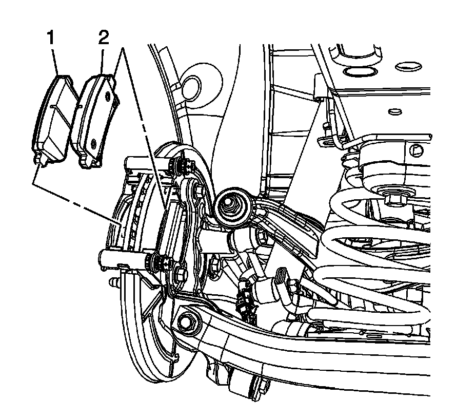 3. Install the inner brake pad (2).