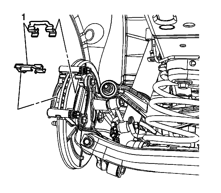 10. Remove and discard the brake pad springs (1).