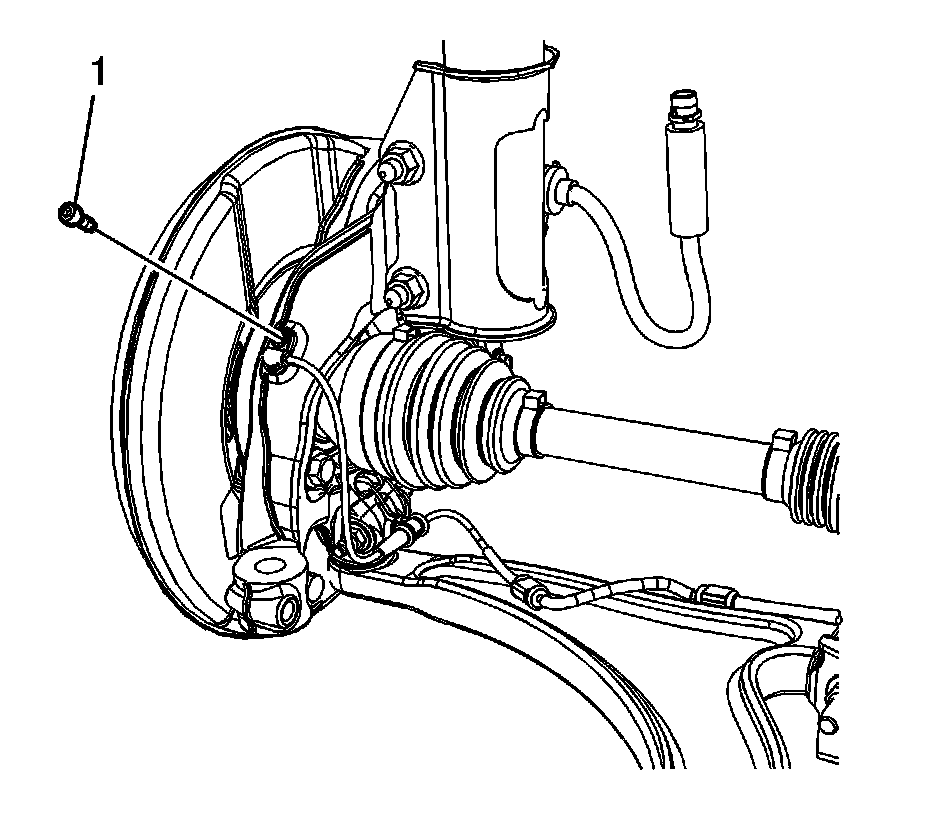 3. Install the wheel speed sensor bolt (1) and tighten to 9 Nm (80 lb in).