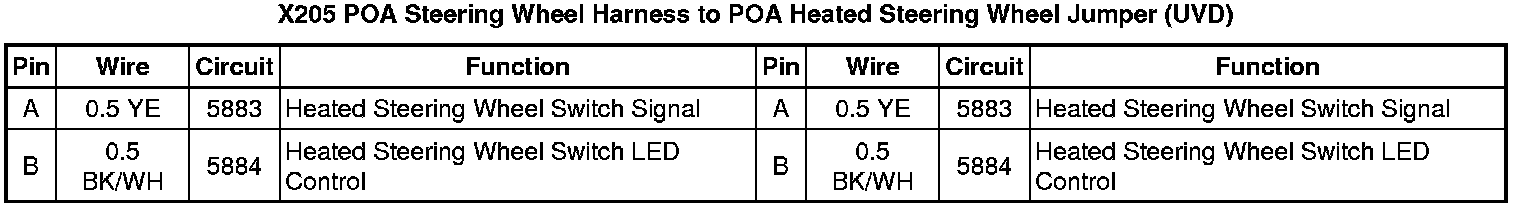 X205 POA Steering Wheel Harness to POA Heated Steering Wheel Jumper (UVD)