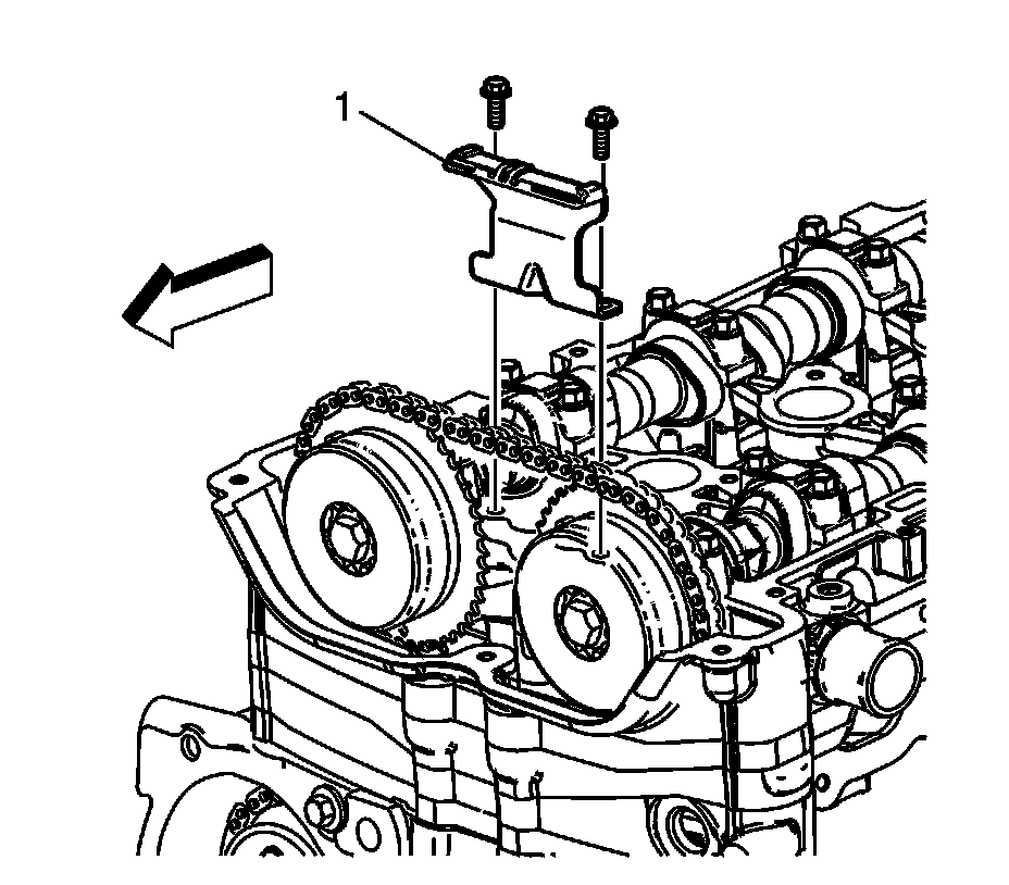 7. Remove the upper timing chain guide (1).