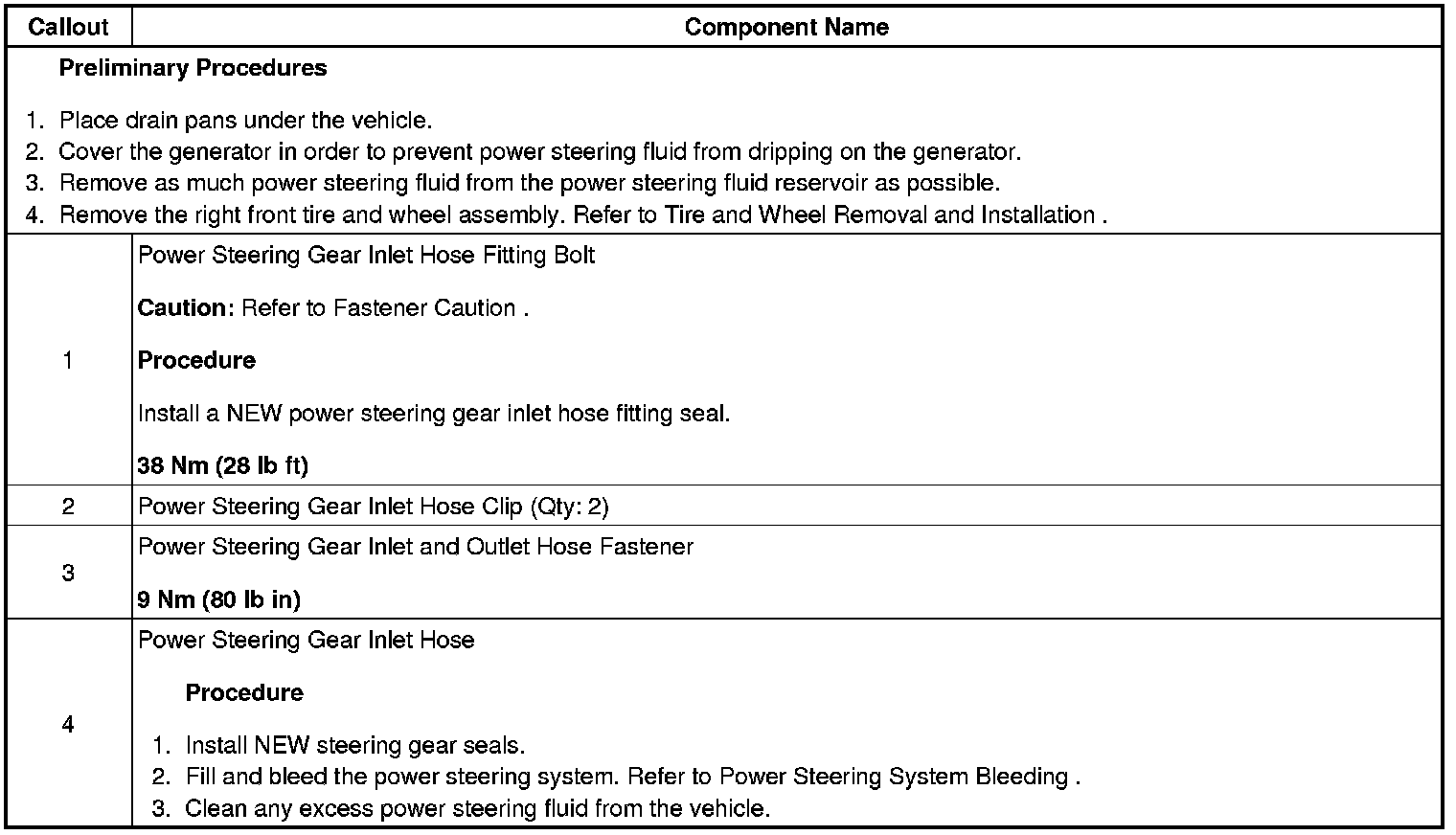 Power Steering Gear Inlet Pipe/Hose Replacement (L4)