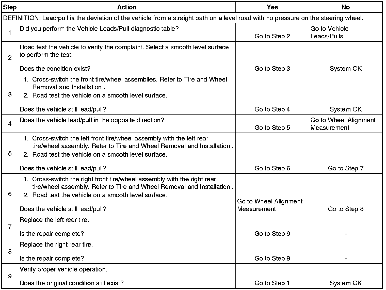 Radial Tire Lead/Pull Correction