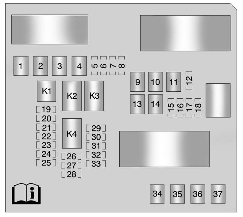The rear compartment fuse block is located on the left side of the trunk behind a cover.