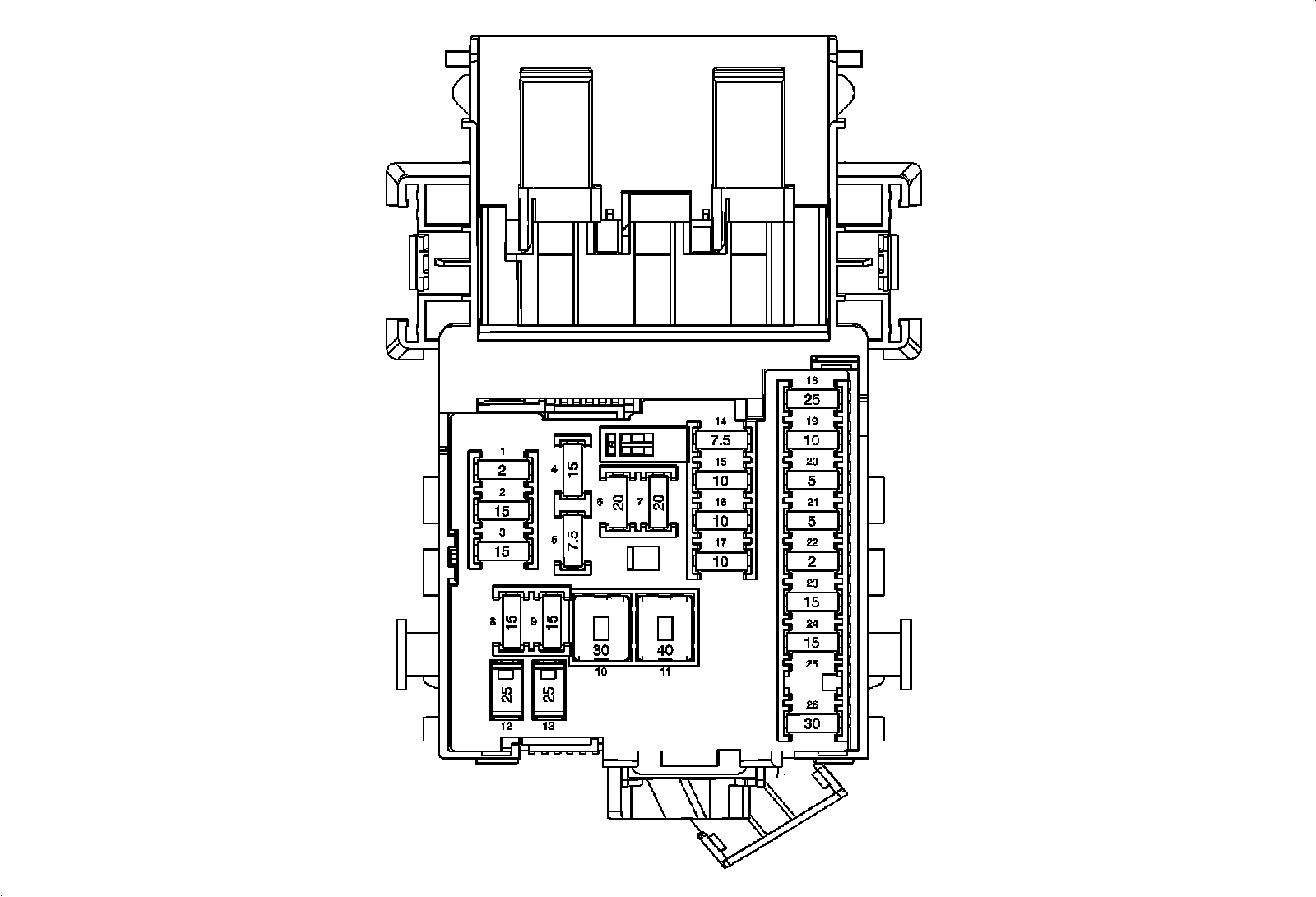 X51A Fuse Block - Instrument Panel - Top View Fuses
