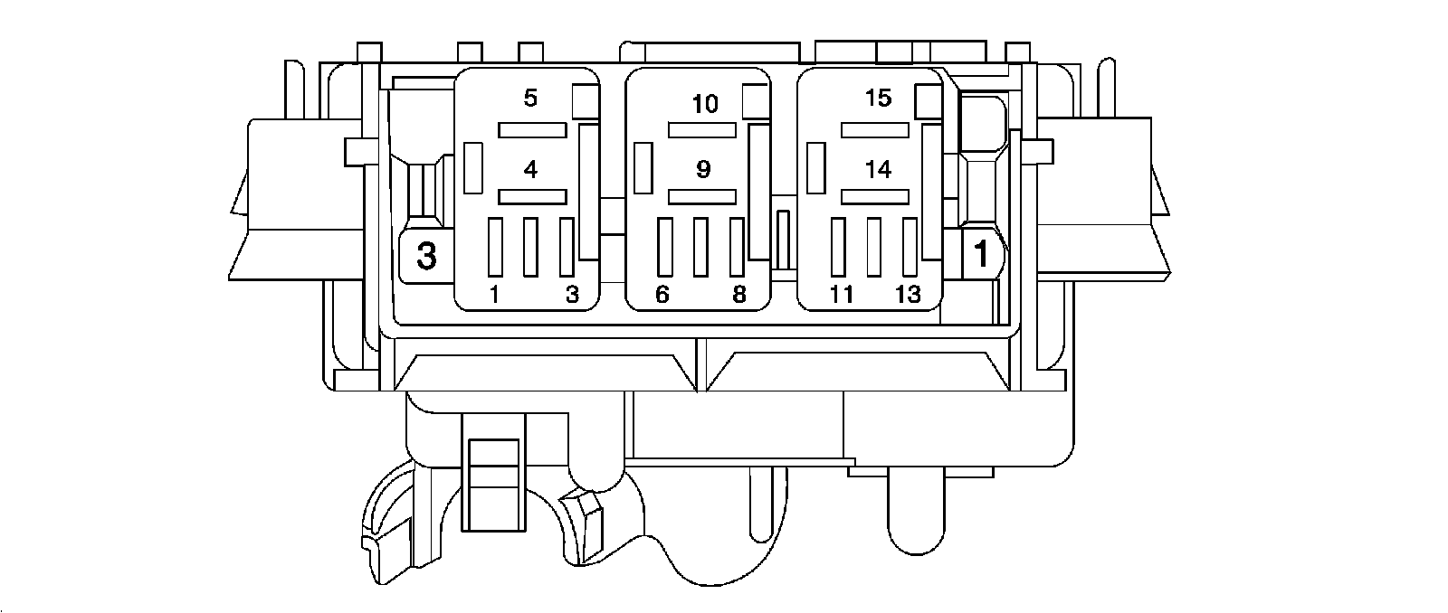 X51A Fuse Block - Instrument Panel - Top View Relays
