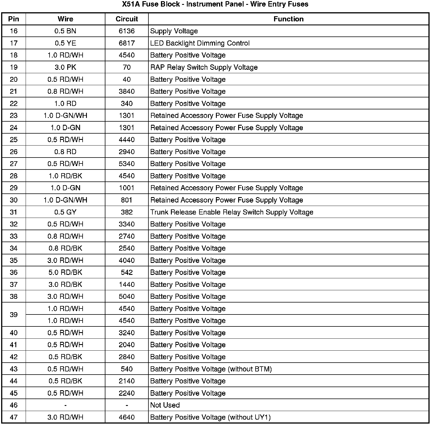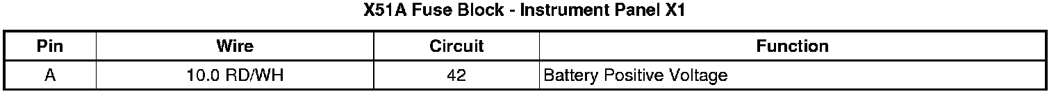 X51A Fuse Block - Instrument Panel X1