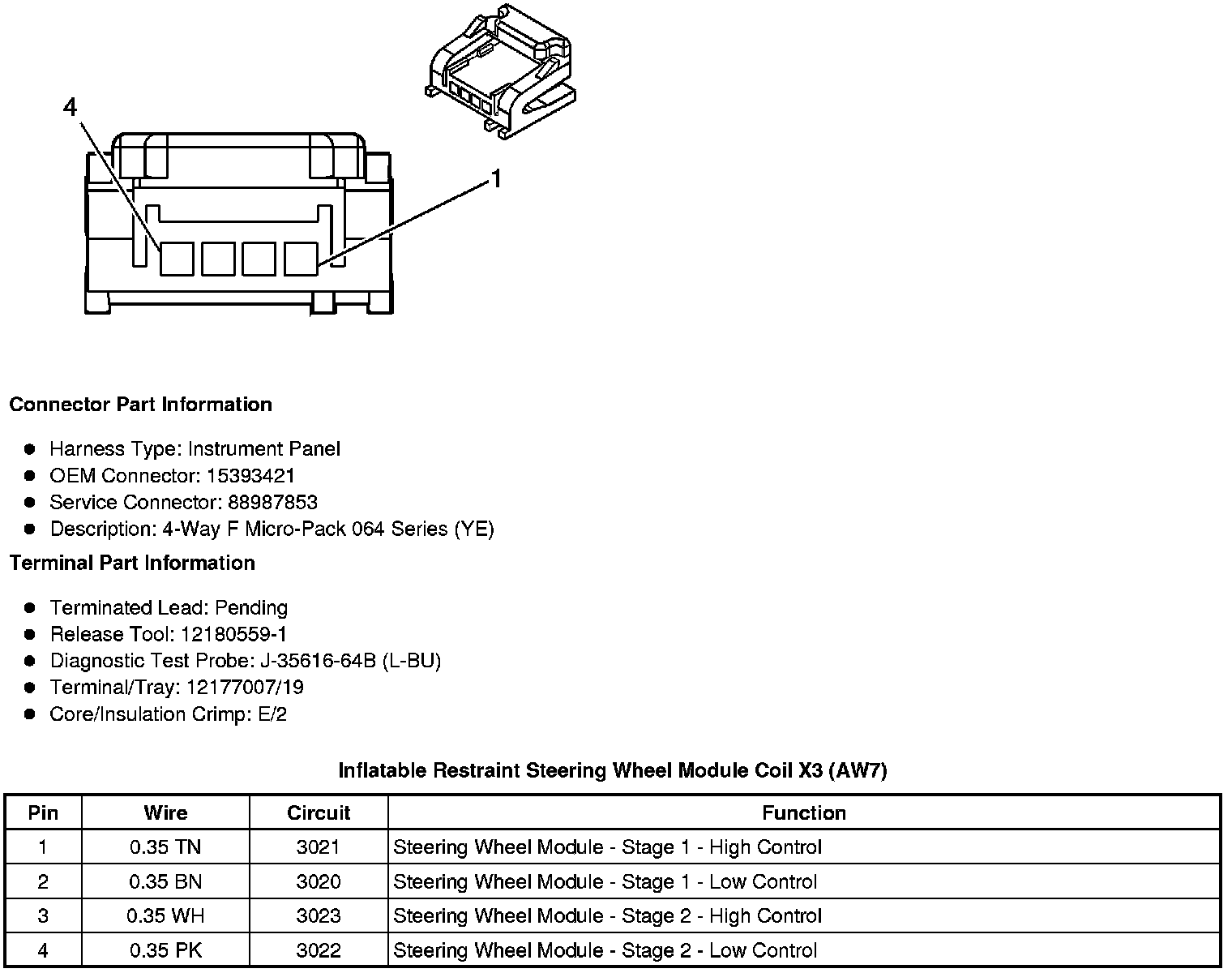 Inflatable Restraint Steering Wheel Module Coil X3 (AW7)