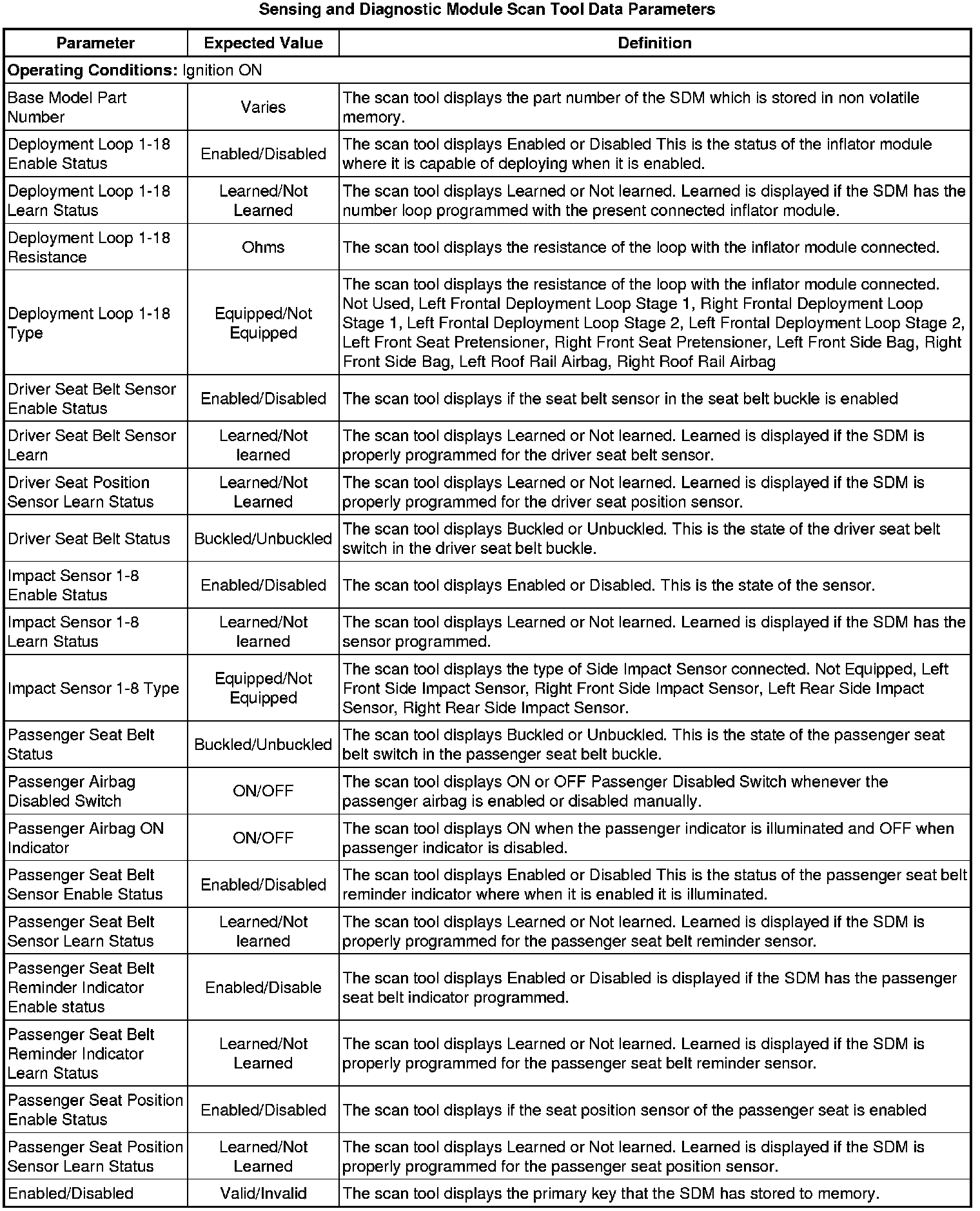 Inflatable Restraint Sensing and Diagnostic Module Scan Tool Information