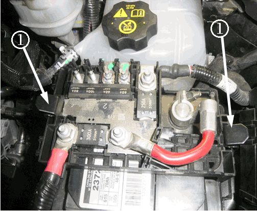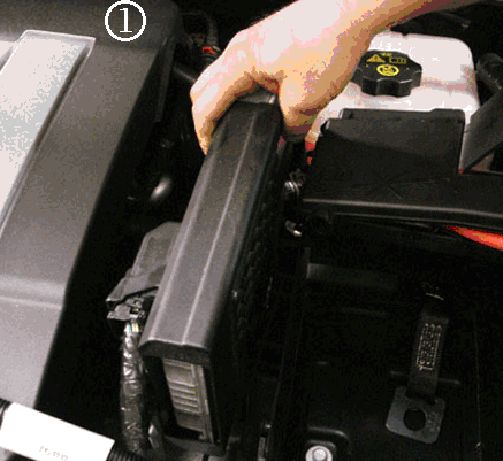 1. Remove the battery tray cover (1).