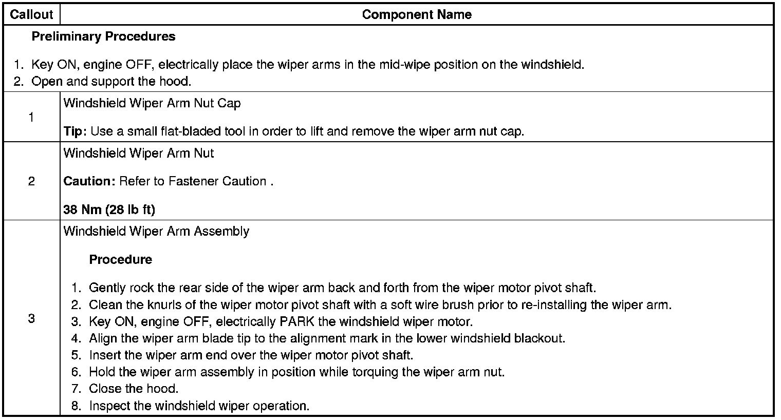 Wiper Arm: Service and Repair