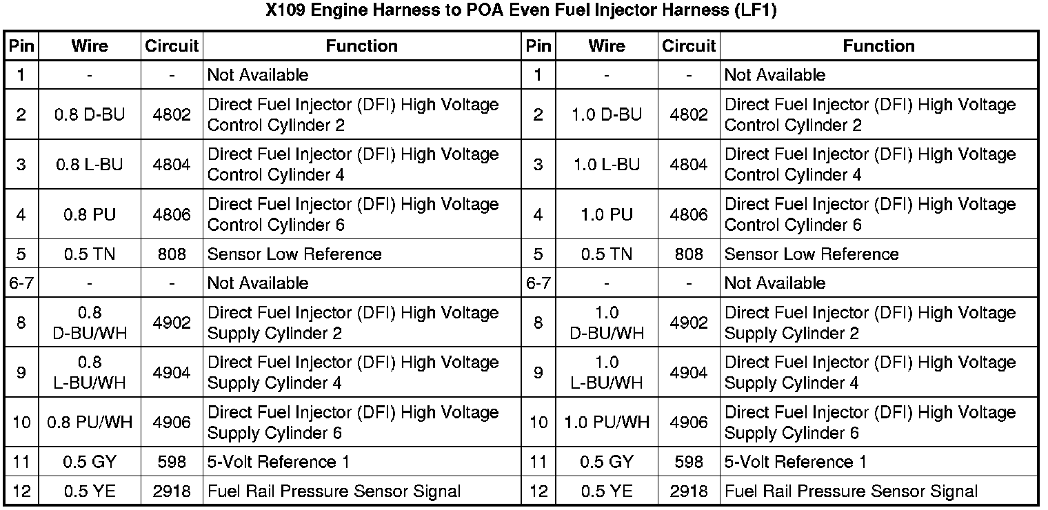 X109 Engine Harness to POA Even Fuel Injector Harness (LF1)